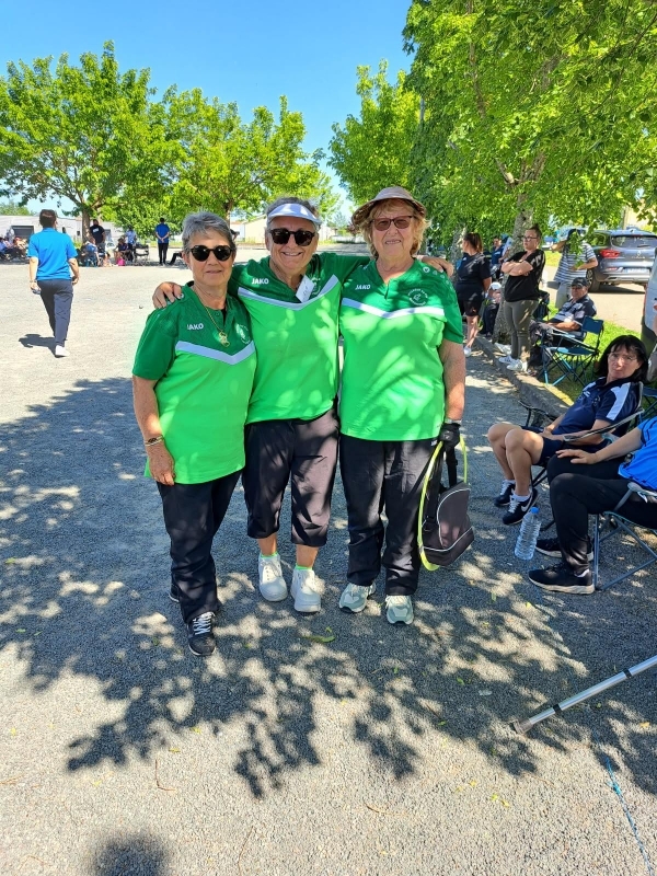 Toutes nos félicitations à nos trois féminines Arlette,Michèle et Sylvie qui ce dimanche à Blasimon ont passé les poules .Un hourra de plus à Sylvie qui s"est hissée en 16ème de finale et a été éliminée par Charlotte Darodes.